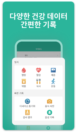 - 외부 건강 앱 연동: 헬스 커넥트, 핏빗 등과 연동하여 데이터 통합 관리가 가능합니다.