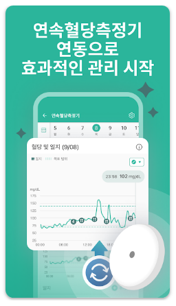 - 실시간 혈당 데이터 연동: 연속혈당측정기 사용 시 혈당 수치가 자동으로 앱에 반영됩니다.