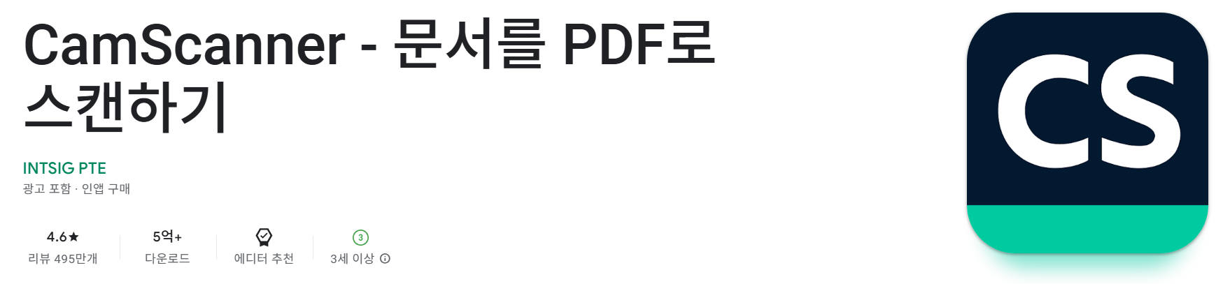- 안드로이드: 구글 플레이스토어에서 'CamScanner' 검색 후 설치 가능합니다.