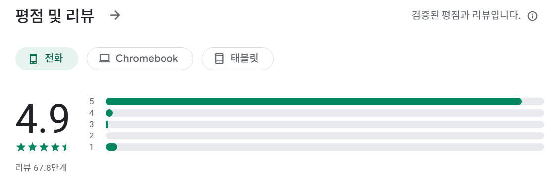 - 평점: Google Play에서 높은 평점을 유지하며 사용자 만족도가 높은 편입니다.