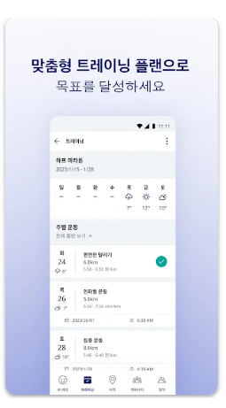 - "트레이닝 플랜이 체계적이라 10K 마라톤 준비에 큰 도움이 되었습니다. 음성 안내 덕분에 운동 중에도 계획을 놓치지 않고 정확하게 따라갈 수 있었습니다."