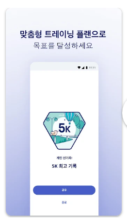 앱에서 목표 레이스 유형(5K, 10K, 하프, 풀 마라톤)을 선택하면 맞춤형 훈련 계획이 제공되며 음성 안내와 함께 진행할 수 있습니다.