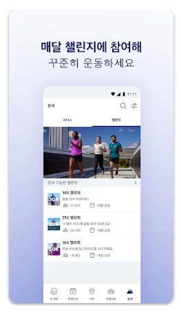 월별 챌린지나 친구와의 경쟁을 통해 운동 동기를 높일 수 있습니다. 챌린지 참여를 통해 기록을 공유하고 다른 사용자와 성과를 비교할 수 있습니다.