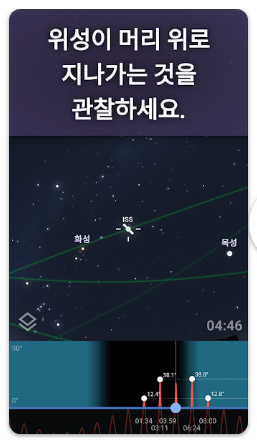 - 인공위성 표시 기능을 통해 국제우주정거장의 이동 경로를 확인할 수 있어, 별 관측 외에도 색다른 재미를 느낄 수 있습니다. 단순한 별자리 앱을 넘어 다양한 천체를 함께 볼 수 있다는 점이 장점으로 느껴집니다.