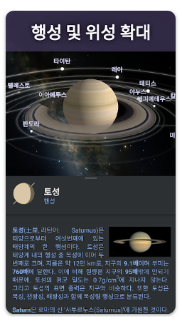- 화면을 터치하여 각 천체에 대한 이름과 정보를 확인할 수 있습니다.
