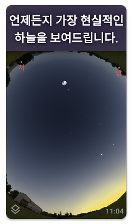 사용자가 있는 위치를 기준으로 현재 시간의 하늘을 정확하게 계산해 보여주며, 날짜와 시간을 변경해 과거 또는 미래의 하늘 상태를 확인할 수 있습니다. 특정 시점에 어떤 별자리와 천체가 하늘에 나타나는지 시뮬레이션 형태로 확인할 수 있습니다.