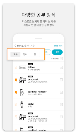 - 단어장을 직접 만들 수 있는 기능이 편리했습니다. 공부하다가 따로 정리하고 싶은 단어를 모아두고 반복해서 볼 수 있어서 개인 단어장처럼 활용할 수 있었습니다.