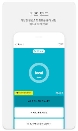 - 앱 설치 후 바로 학습 시작: 별도 로그인 없이 앱 설치 후 곧바로 단어 학습을 시작할 수 있습니다.