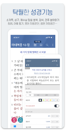 또한 글자 크기나 화면 색상처럼 사소해 보일 수 있는 부분까지 세밀하게 조정할 수 있어, 상황에 따라 읽기 환경을 바꿀 수 있습니다. 짧은 시간 말씀을 읽을 때나 오랜 시간 통독할 때 모두 무리가 없도록 구성된 점에서, 성경을 꾸준히 가까이 두고 사용하기에 적합한 어플이라는 인상을 받게 됩니다.