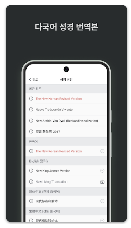 앱에서 성경 번역 종류를 선택할 수 있나요?