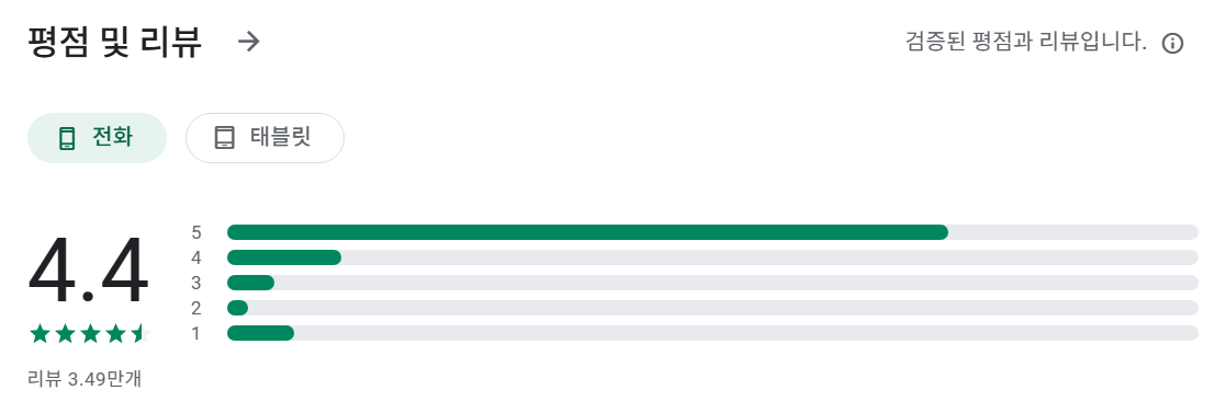 사용자 평가가 높은 편으로 많은 리뷰가 긍정적으로 작성되어 있습니다.