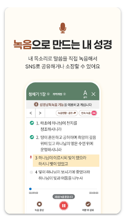 성경과 찬송을 하나의 앱에서 함께 사용할 수 있다는 점은 개인적인 신앙 시간 관리에 실질적인 도움이 됩니다. 오프라인 재생, 번역본 선택, 묵상 기록 등 기본적인 기능들이 안정적으로 구성되어 있어 꾸준히 사용하는 데 무리가 없습니다. 성경 듣기를 중심으로 한 앱을 찾는 분들에게 적합한 방향성을 가진 서비스입니다.