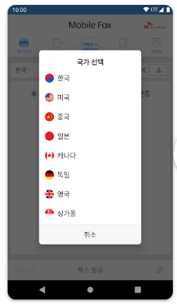 - 국가 선택 기능: 원하는 국가 번호를 선택하여 문서를 전송할 수 있습니다.
