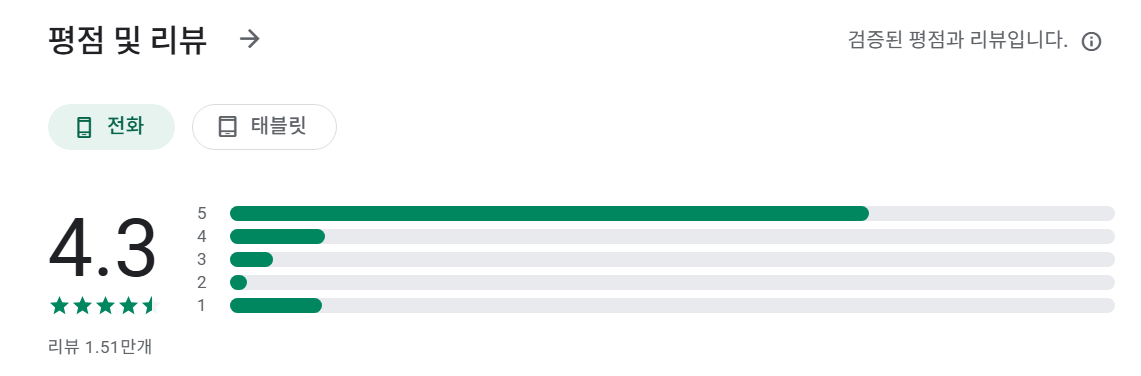 - 평점: Google Play 평점은 약 4.28점 이상입니다.