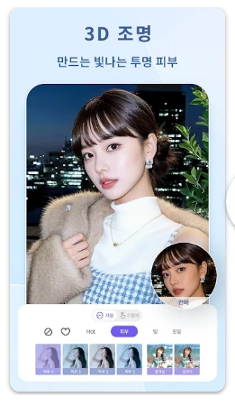 피부 톤과 결점을 보정하여 더 매끄럽고 밝은 피부를 연출할 수 있습니다. 잡티 제거, 주름 완화, 피부 톤 균일화 등의 기능을 통해 촬영 환경이나 조명에 따라 달라진 피부 상태를 자연스럽게 개선할 수 있습니다.
