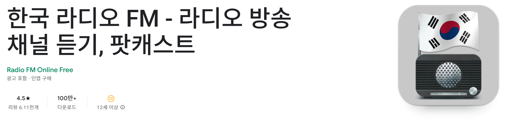 - 설치 방법: Google Play 스토어에서 “한국 라디오 FM” 검색 후 설치 가능
